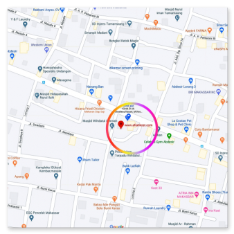 - Lokasi strategis (cek route di google map dan google street view).